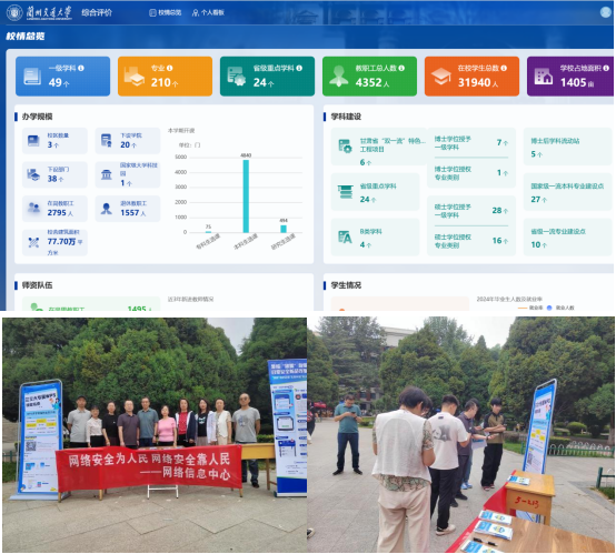 为精准解决师生诉求,中心多渠道开展调研。赴省内外8所高校学习先进经验,走访校内20余个部门学院,面向全校1200余名师生开展在线问卷调研,将“数据服务不精准”“信息化支撑不足”等反馈问题列为整改重点。依托调研成果,“兰交数据”平台应运而生,建成覆盖校、院、个人三级的领导驾驶舱,包含10余个数据维度、230余项数据指标,通过“分级授权、分类展示”架构设置校情总揽、学院看板等4大模块,精准匹配不同群体需求。新部署30台虚拟服务器支撑业务系统建设,安装本地接入Deepseek算力“交小智”智能服务助手,“交大AI问数”应用在全校试用,师生查询数据、咨询问题的响应时间从平均15分钟缩短至30秒内,“数据服务精准触达”的整改成效让92%以上的师生表示高度认可。