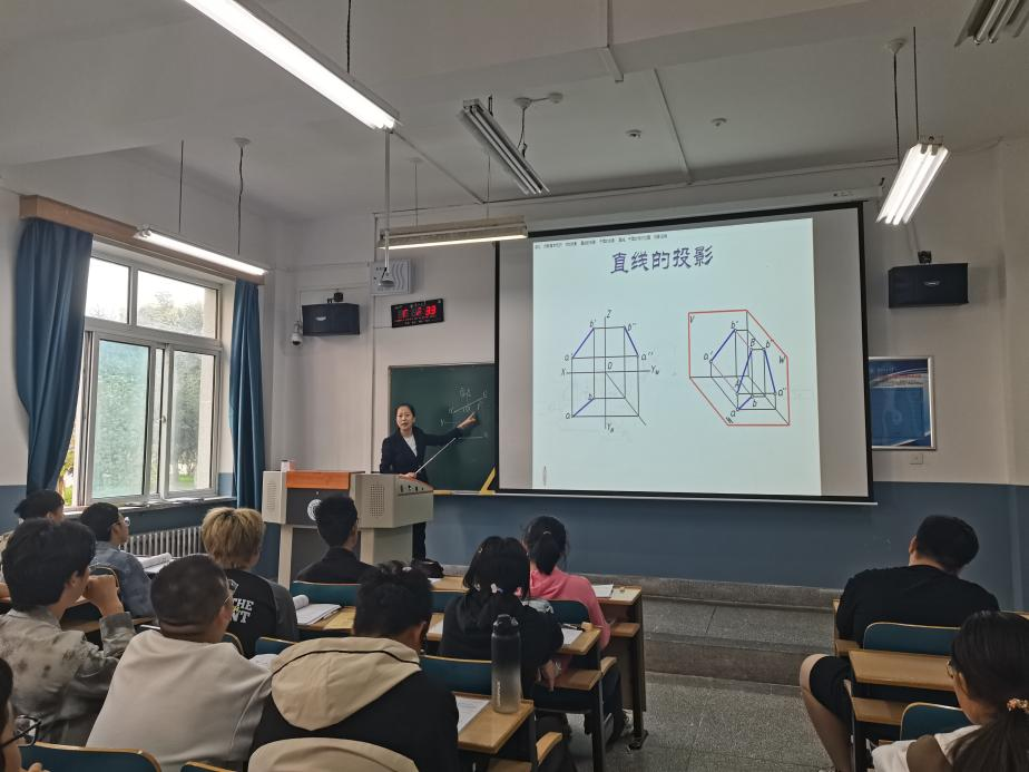 9月30日,省级教学名师张丽萍教授主讲《画法几何》。针对课程中抽象的线面关系,张教授采用“三维动画演示+板书推导”的创新教学模式,通过动态展示换面法原理,将复杂的几何关系以直观的方式呈现给学生。同时,配合精准量取练习,引导学生逐步建立空间概念,有效提升了学生的空间想象力和制图规范意识。这种动静结合的教学方法,让枯燥的几何知识变得生动有趣,深受学生喜爱。