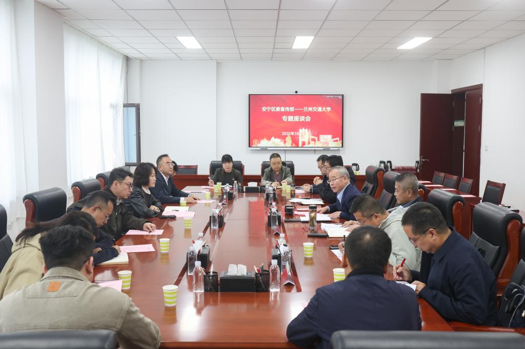 蒋源庆指出,兰州交通大学作为驻区重点高校,在人才培养、文化建设、理论研究等方面优势显著,安宁区委宣传部希望通过此次交流,深入了解学校宣传思想文化工作开展情况,在新闻宣传联动、文明实践共建、融媒体资源共享、理论成果转化等领域搭建合作平台,借助高校智力资源与文化优势,助力安宁区宣传思想文化工作提质增效,同时为学校发展营造良好的地方环境。