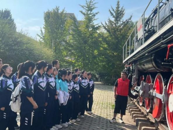 实验室探秘后,师生们走进天佑铁路展览馆,在老照片与机车模型间追溯我国铁路发展脉络。从蒸汽机车的斑驳零件到高铁模型的流线造型,展品串联起我国铁路从追赶到引领的奋斗历程,讲解员结合展品讲述的铁路建设者创新故事,让科学精神的传承变得鲜活立体。