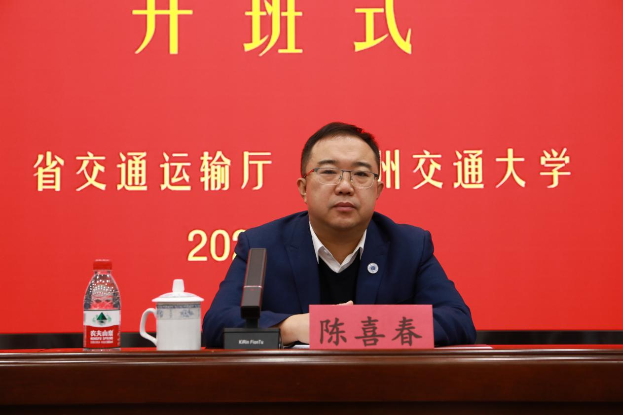 陈喜春在致辞中代表学校对培训班的顺利开班表示祝贺,并对省交通厅及各兄弟单位长期以来的支持表示感谢。他回顾了学校67年来扎根西部、服务交通强国战略的办学成果,强调学校以轨道交通为特色,在智慧交通、低空经济等前沿领域持续贡献“兰交智慧”。他表示,学校将充分发挥人才培养与科研创新优势,与省交通厅深化合作,为甘肃交通事业注入新动能。陈喜春指出,交通是兴国之要,甘肃作为综合交通枢纽,需要高素质党务干部支撑发展。他希望学员珍惜机会、学以致用,提升履职能力,为交通事业高质量发展贡献力量。