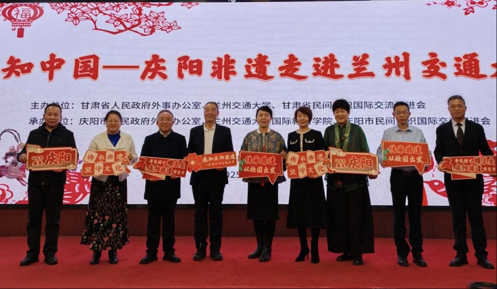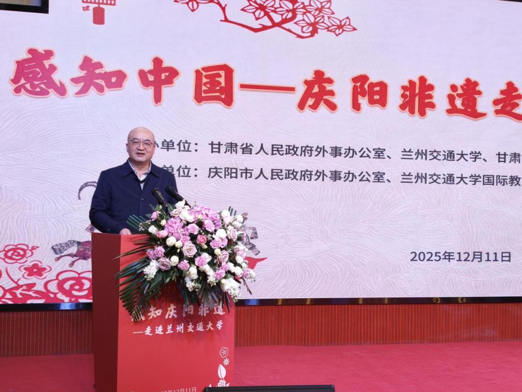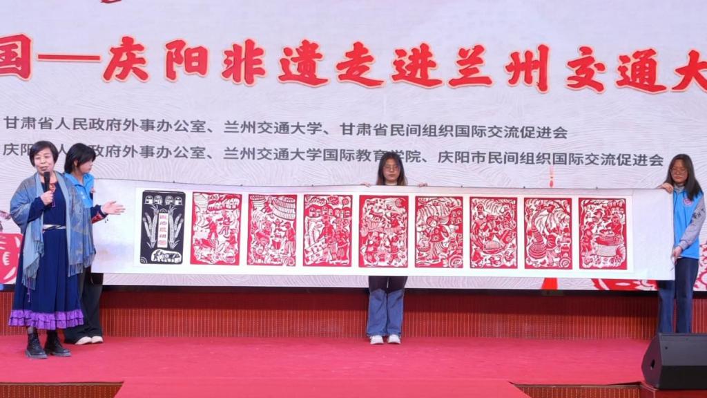 12月11日,“感知中国——庆阳非遗走进兰州交通大学”活动在学校成功举办。本次活动由甘肃省人民政府外事办公室、庆阳市人民政府外事办公室与兰州交通大学联合主办,以非物质文化遗产为纽带,为在校师生特别是来自世界各地的留学生打造了一场沉浸式的丝路文化体验之旅,生动推动了中外文化的交流与融合。
