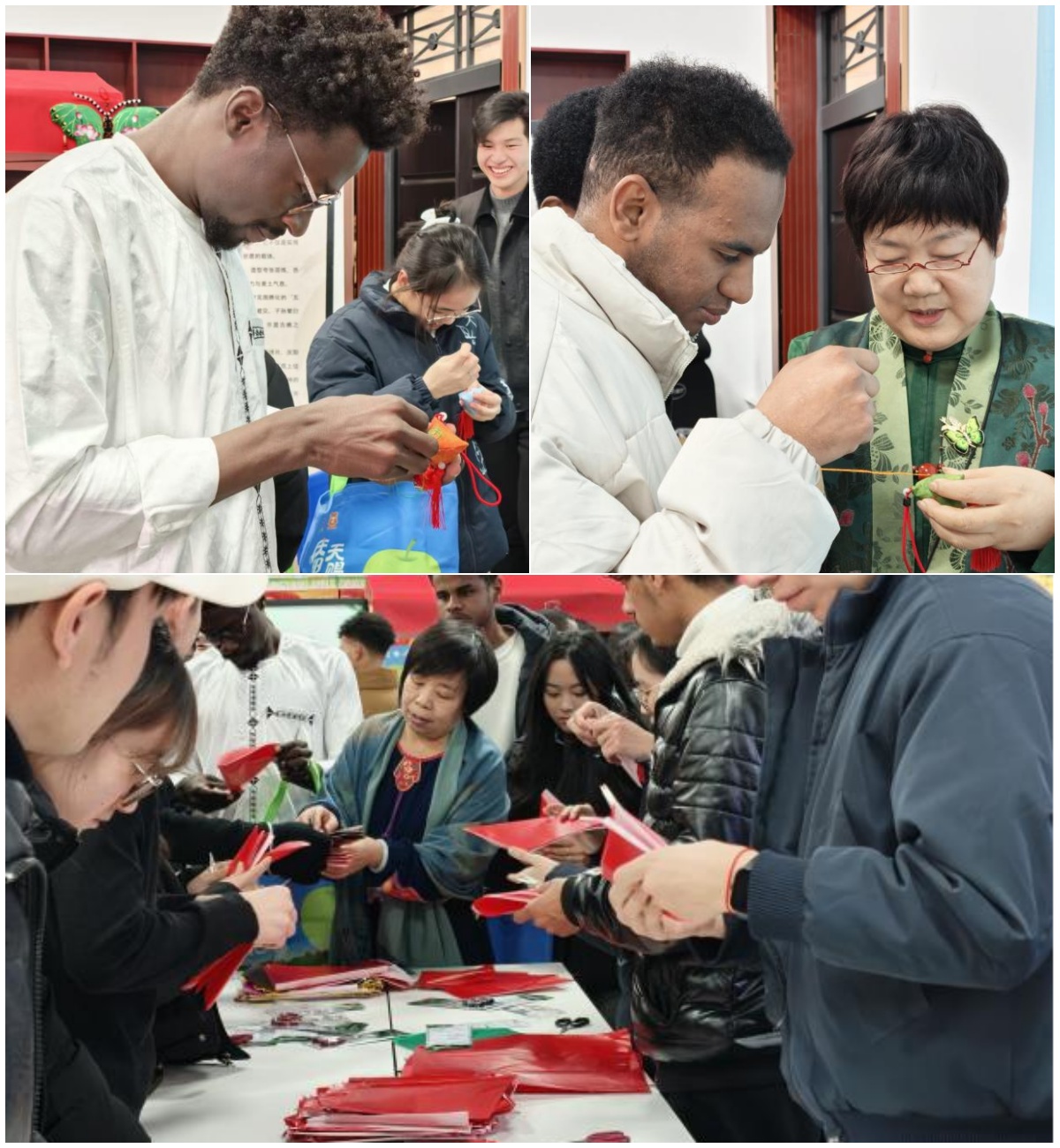 体验区内,留学生们在传承人手把手地指导下尝试剪纸与香包制作,指尖触碰的是技艺,心中感受的是文化温度。庆阳非遗文化展与苹果品鉴区也吸引了众多国际面孔,大家在品尝甘甜果实的同时,通过实物与讲解深入了解这片土地的人文故事。