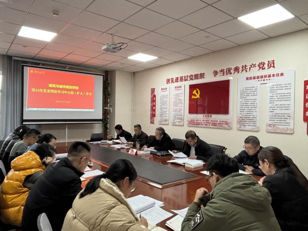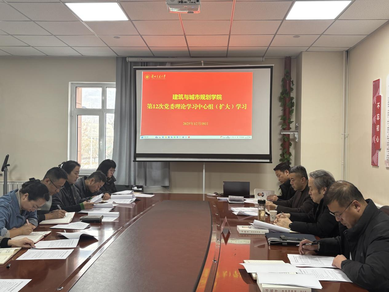 12月18日,建筑与城市规划学院召开2025年第12次党委理论学习中心组(扩大)学习会议。副校长霍海峰列席旁听并进行工作指导。学院党委委员、科级干部、系(室)负责人、各党支部书记参加了会议,会议由学院党委负责人主持。