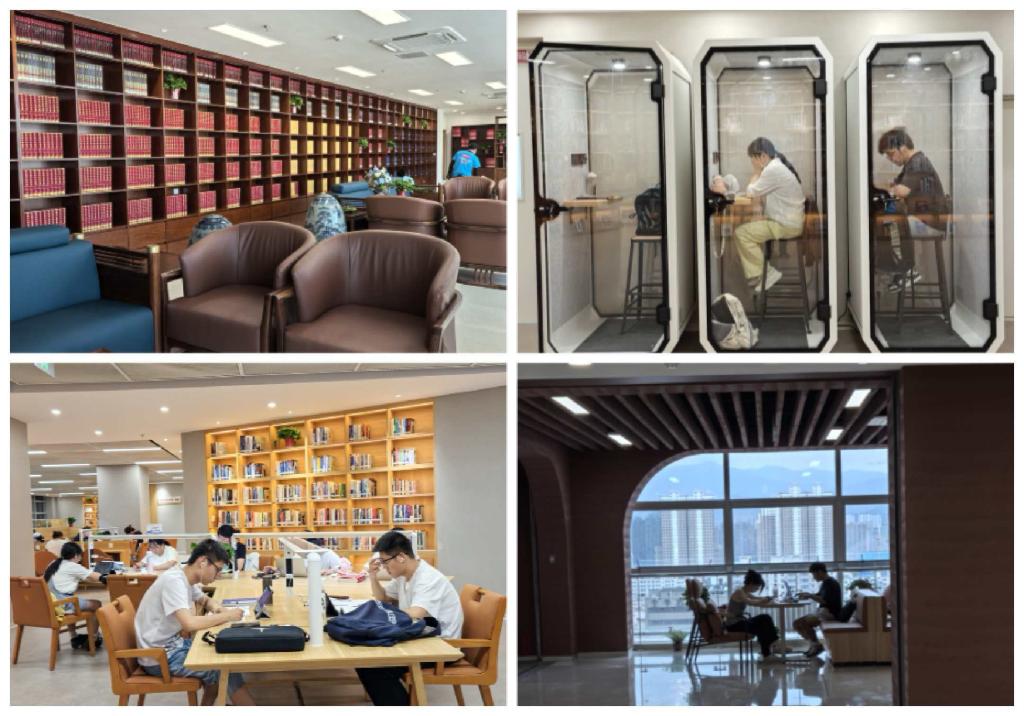 服务效能创新高。改造后的图书馆成为校园核心育人打卡地,年接待读者近100万人次,自习室预约超30万人次,日均入馆峰值达5500余人次,服务承载力和吸引力显著增强。