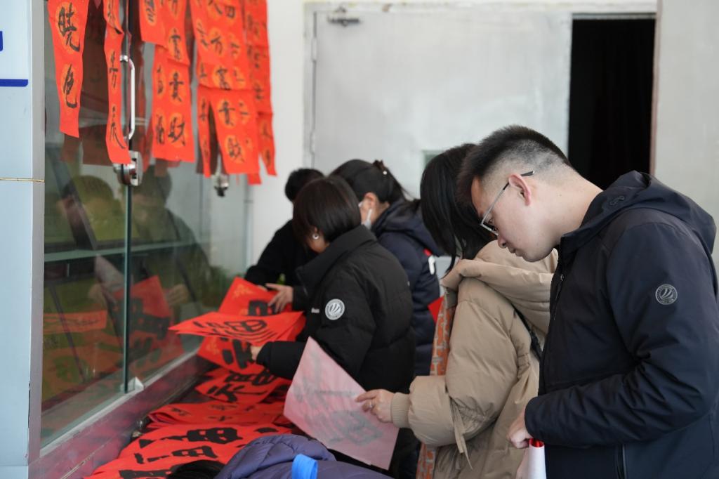 本次送春联活动秉持“为群众办实事”的宗旨,提前准备了春联,内容涵盖传统佳句、新春祝福及时代新风,既保留了书法艺术的韵味,又注入了对新年的美好祈愿。活动当天,红纸金墨的春联整齐陈列,吸引了众多教职工及家属驻足挑选。大家有序登记、领取,现场洋溢着欢声笑语,墨香与年味交织,为寒冬校园增添了浓浓暖意。