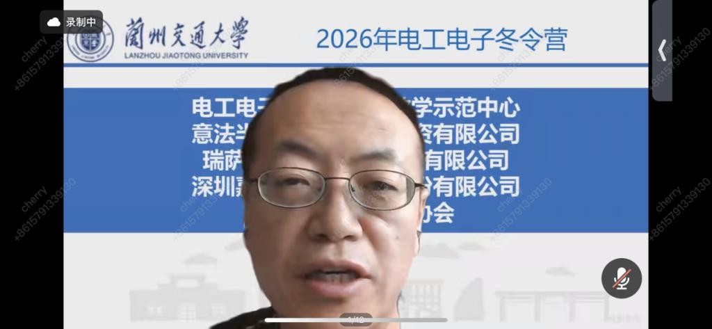 1月16日,兰州交通大学“电工电子助力成长”冬令营开幕式隆重举行,意法半导体(中国)投资有限公司院校合作经理唐晓城、瑞萨电子嵌入式处理器事业部高级经理陈峰、深圳嘉立创科技集团股份有限公司立创开源硬件创业扶持计划负责人陈隆、我校创新创业学院副院长高德勇、电工电子国家级实验教学示范中心副主任张华卫与参加本次冬令营的200余名同学齐聚云端,共同开启这场聚焦实践、赋能成长的科技研学之旅。
