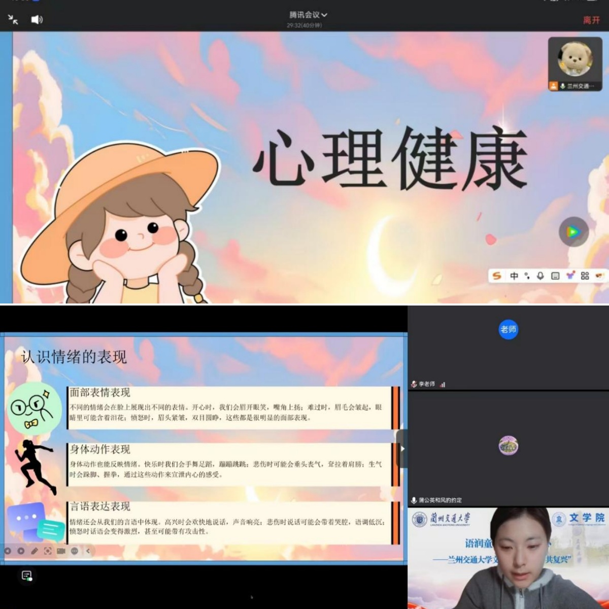 关注心理健康,以语润心成长。第四期课程创新性地将推普与心理健康关心关爱融合。课程围绕“认识情绪—表达感受—解压实践”三大模块,通过具象化讲解和趣味互动,教孩子们用规范的普通话表达喜怒哀乐,并学习腹式呼吸等解压技巧。这种“普通话推广+心理健康”的双融双促模式,既夯实了语言基础,又为孩子们的心灵成长赋能。