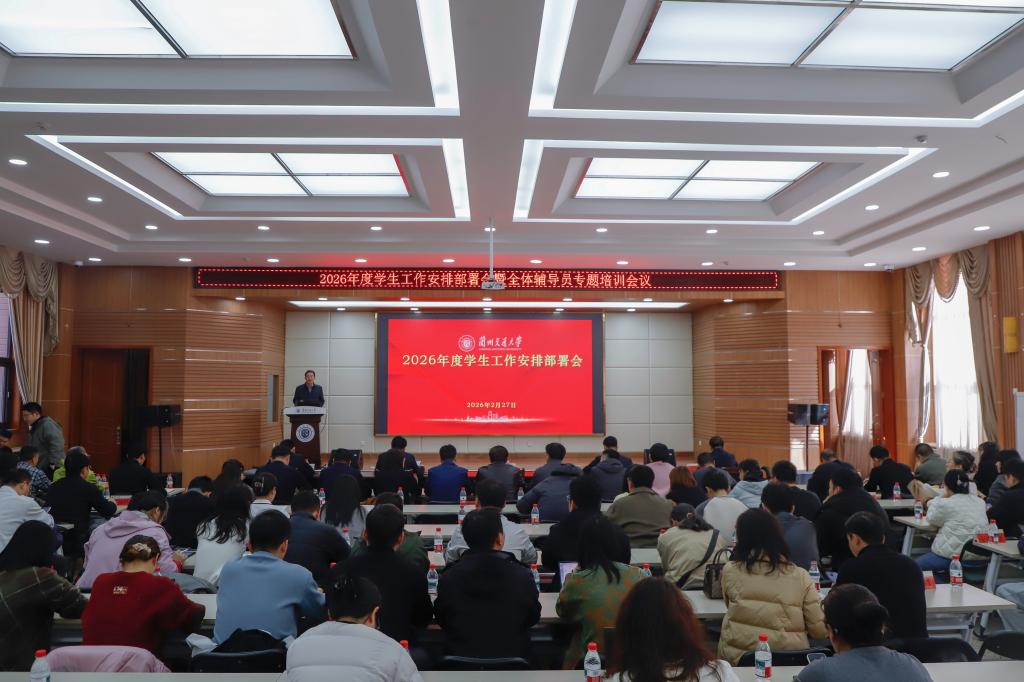 为谋划部署2026年度学生重点工作,明确目标任务,细化工作举措,确保全年学生工作有序推进、落地见效,同时进一步提升我校辅导员队伍的理论水平、职业能力和专业素养,2月27日,我校召开2026年度学生工作安排部署会暨全体辅导员专题培训会议。党委常委、副校长苏程出席会议并讲话,党委宣传部、党委保卫工作部、招生就业处、党委学生工作部负责同志,各学院(部)主管学生副书记、副院长,学生工作办公室主任、团委书记,全体辅导员及学生工作部(处)全体人员参加会议。