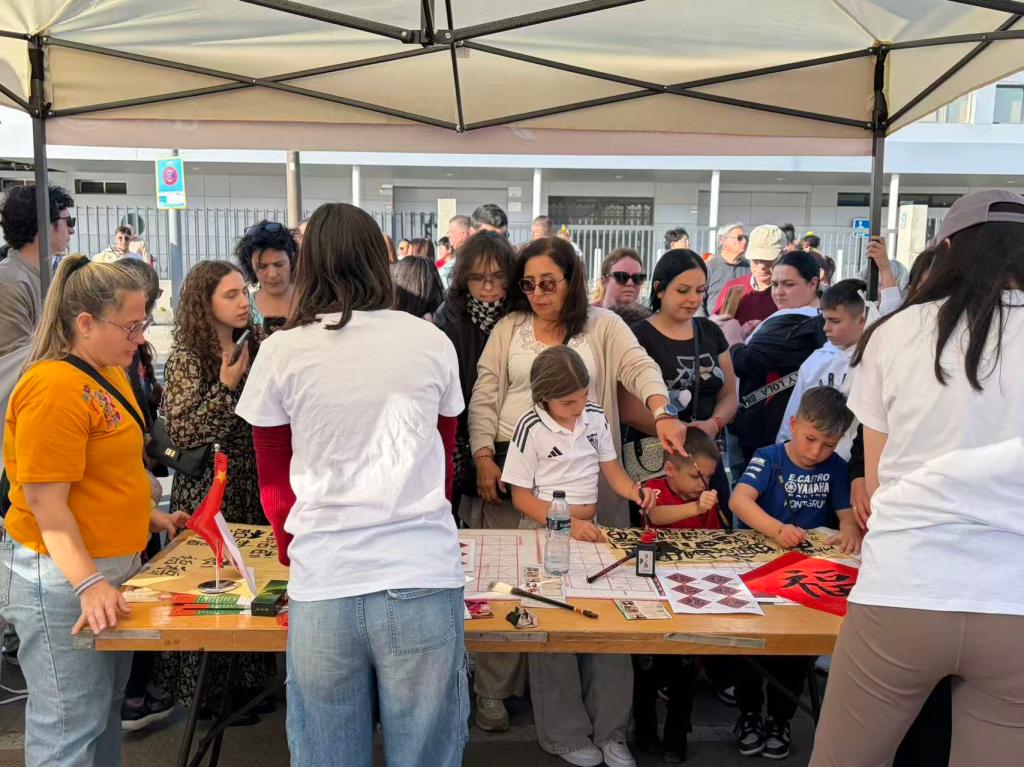 学院文化体验展位同样人气高涨。“起中文名”和书法体验活动吸引大量市民排队参与,从上午持续至傍晚,现场气氛热烈,充分展现了当地民众对中华文化的浓厚兴趣与积极参与。