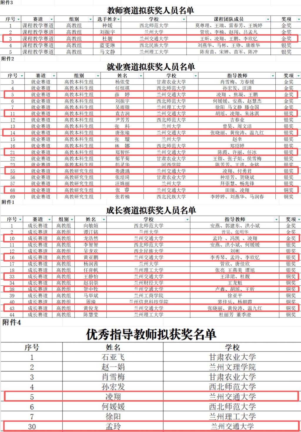 本次大赛由甘肃省教育厅主办,以“筑梦青春 职引未来”为主题,设课程教学、本科生成长、本科生就业、研究生就业四大赛道。大赛自2025年11月启动,吸引了全省48所高校的300余名选手同台竞技。经过省赛的激烈角逐,我校杜靓获(教师)课程教学赛道金奖;龙浩然、薛婷同学分获成长赛道、就业赛道金奖;凌翔、孟玲获评“优秀指导教师”。