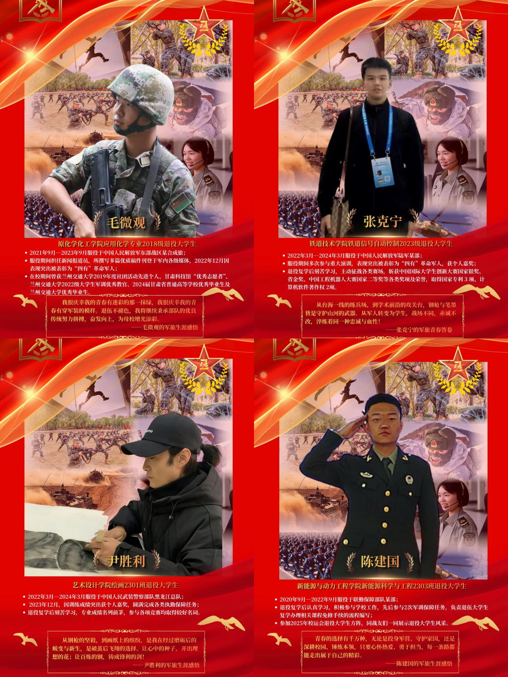 在第五教学楼前的展览现场,19位退役大学生的风采展板依次排开,构成了一道独特的风景线。他们中,有曾服役于边疆一线、在艰苦环境中磨砺意志的戍边卫士;有在重大演训任务中表现突出、屡获嘉奖的技术尖兵;也有在抢险救灾一线冲锋在前、守护人民群众生命财产安全的钢铁战士。如今,他们光荣退役,重返校园,有的在专业学习上刻苦钻研、成绩优异,有的在志愿服务中无私奉献、勇于担当,有的在学生工作中积极作为、服务同学,将部队的优良作风带到了学习生活的方方面面。