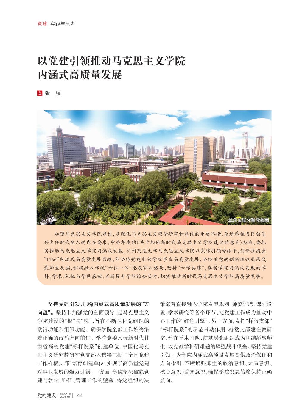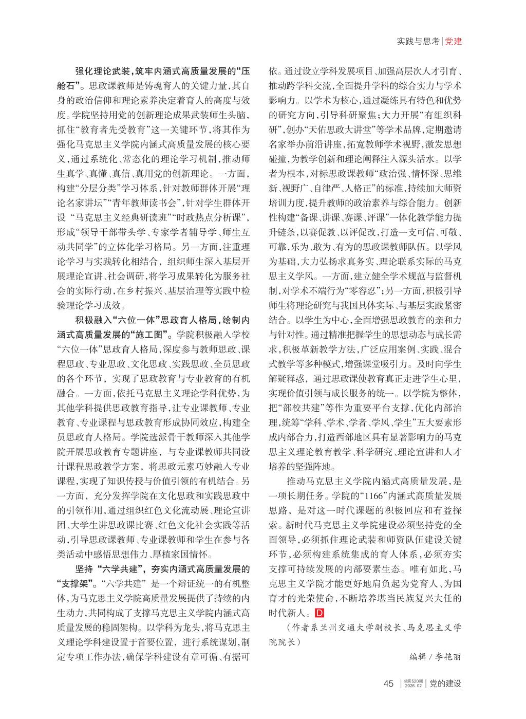 【党的建设】兰州交通大学党委常委、副校长、马克思主义学院院长张弢:以党建引领推动马克思主义学院内涵式高质量发展